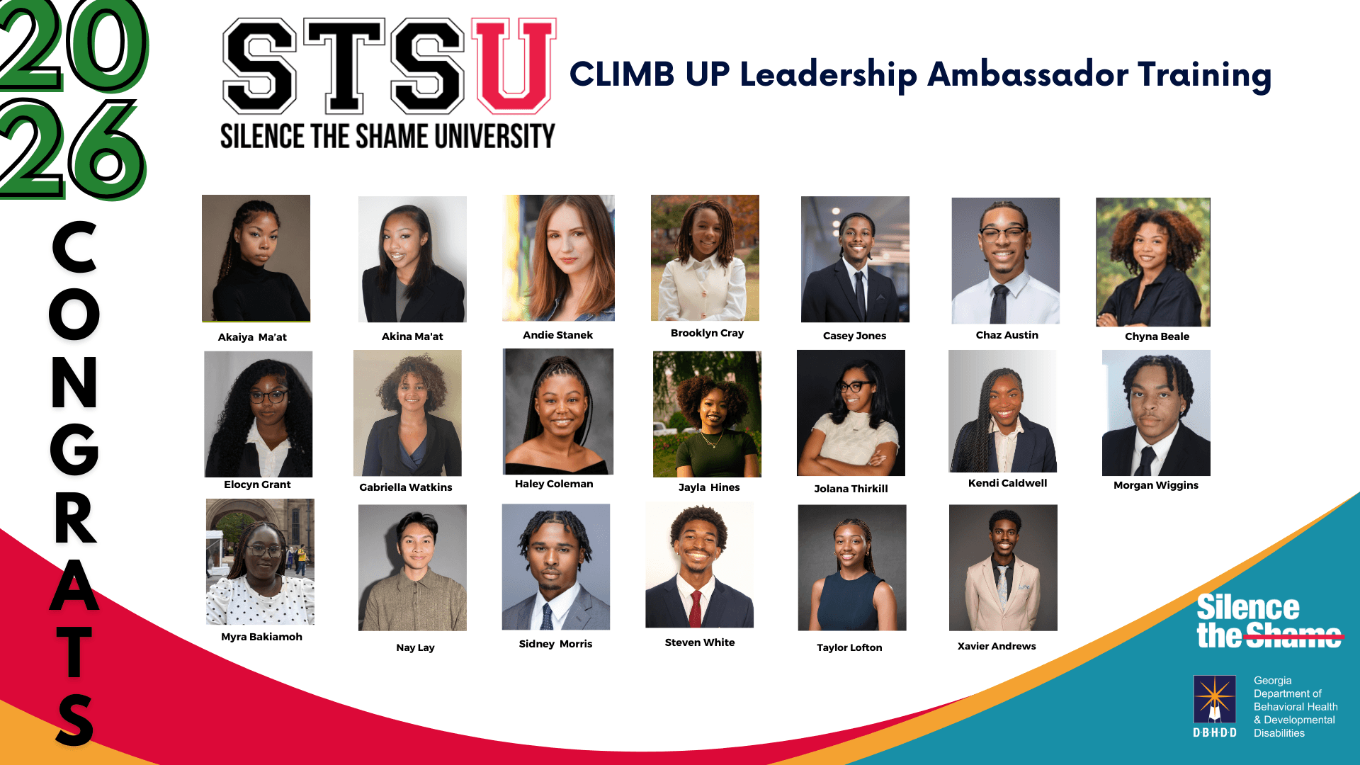 Silence the Shame University (STSU) is an innovative college ambassador program designed to bridge the gap between undergraduate students and mental health resources within their educational institutions and broader communities. By empowering undergraduate students to become advocates for mental health, STSU aims to foster a culture of openness, support, and understanding. Our mission is to foster a more mentally well and informed student body and community by promoting access to behavioral health services, enhancing mental health awareness, reducing the stigma associated with mental health challenges, and encouraging a supportive, informative, and connected culture regarding the social determinants of mental health.